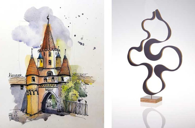 40 Kunstwerke – unter anderem Acryl- und Brandzeichnungen sowie Skulpturen aus Holz, Eisen und Stein. Inhaltlich steht das Thema „Mensch“ im Vordergrund.
