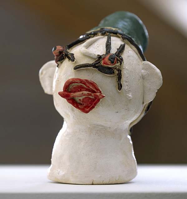Christina Kerscher, 1990 in Regensburg geboren, lebt in der Wohngemeinschaft St. Hildegard in Bogen und besucht seit 2013 das Atelier Kunst Inklusiv. Sie hatte 2022 eine Einzelausstellung in der Galerie KULTURFORMEN, Linz. Sie war Preisträgerin des Kunst.Preis für besondere Menschen in Niederbayern und der Oberpfalz: 2020 2. Platz und 2023 3. Platz. Christina Kerscher modelliert im Atelier Kunst Inklusiv der KJF Regensburg Köpfe aus Ton. Inspiriert von Menschen, die ihr nahestehen, erfindet die Künstlerin Portraits mit langen Wimpern und eigenwilligen Gesichtszügen. Einige von ihnen tragen märchenhafte Hüte oder Kronen. Mit keramischen Farben bemalt und glasiert entsteht ein stiller Reigen wilder Köpfe, deren Augen den Betrachterinnen und Betrachtern freundlich und aufmunternd entgegenblicken.